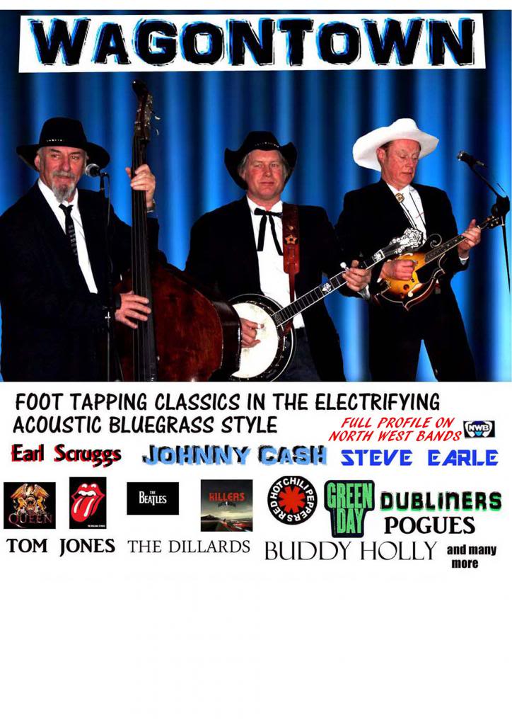 Hi Folks, we are a trio playing acoustic, foot tapping tunes, with vocal harmonies through a not too loud PA. No ten minute sit down dirges. We come from where they make wagons, hence Wagontown.The videos on You Tube are unplugged versions of some of our tunes and have been posted just to give an idea of what we're about. We consist of Tel (Double Bass/Vocals/Harmonica), Stu (5-string Banjo/Guitar) and Steve (Guitar/Mandolin/Vocals). Check out our varied setlist from Earl Scruggs/Duelling Banjos to Dubliners/Pogues/Beatles/Queen/Green Day etc, all played in the electrifying Acoustic Banjo/ Mandolin style. We dont use backing tracks, or any other tech wizardry, what you see is what you get.