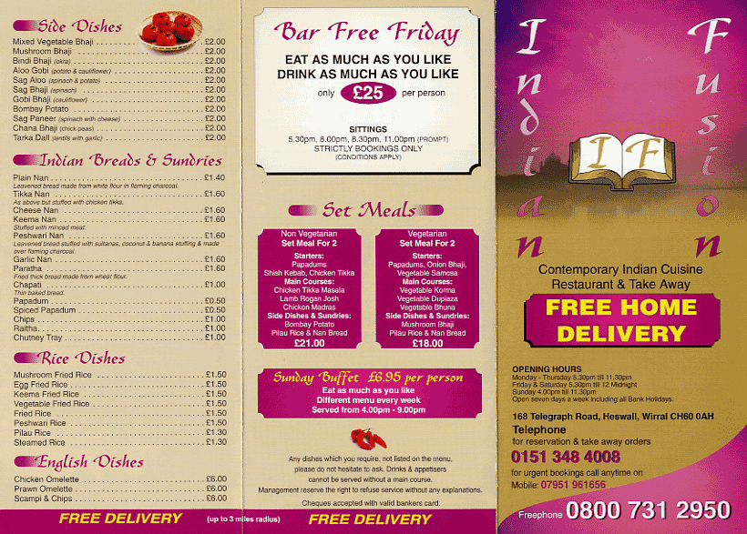 Contemporary Indian Restaurant with takeaway and delivery service. Set meals and offers throughout the week.