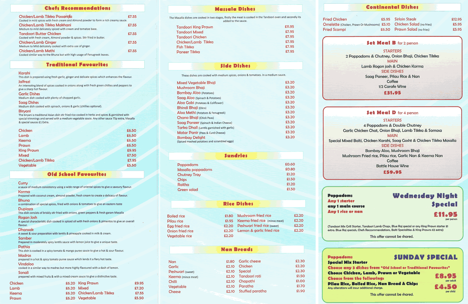 Our hospitality, service & food is second to none! Don't take our word for it, ask any of our satisfied customers, or read our recommendations below - or better still come and enjoy the Blue Raj experience yourself.