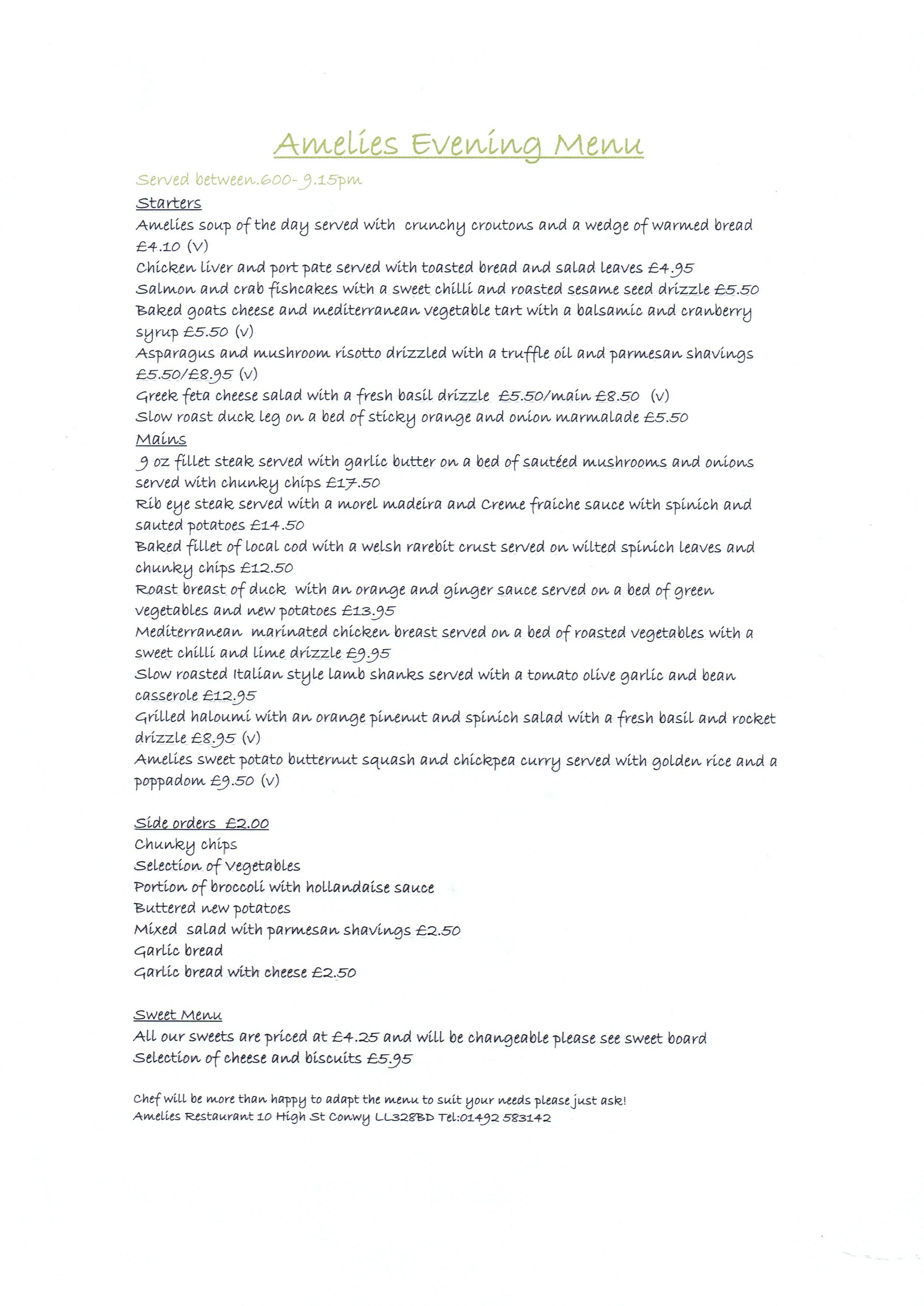 Came here last year for lunch whilst holidaying in North Wales, saw the menu and the quaintness of the place which enticed us in, very pleased we did, the restaurant was bustling the service was excellent and so was the food,staff and atmosphere. Came here against this year for both lunch and evening meals, still as excellent and same staff. Well worth a visit.