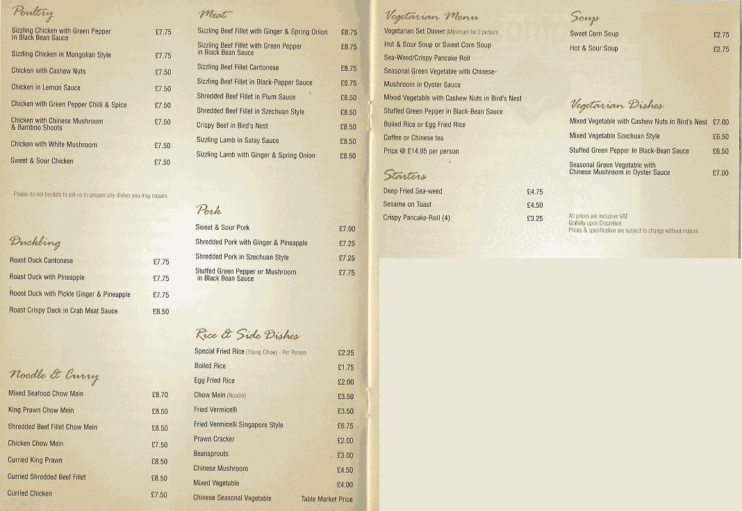 Finest Chinese Cuisine Cantonese & Peking Specialists Fully Licensed First Class Service Friendly Atmosphere Parties & Corporate Welcome