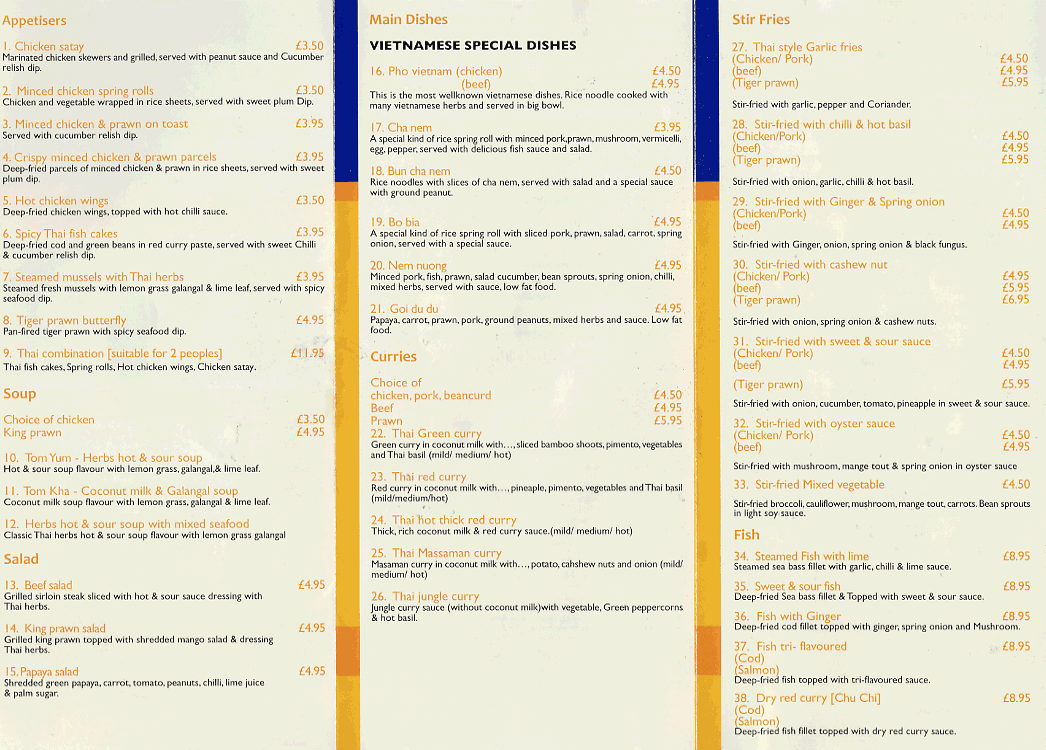 Traditional restaurant service Thai & Vietnamese dishes. The food is fresh and authentic.