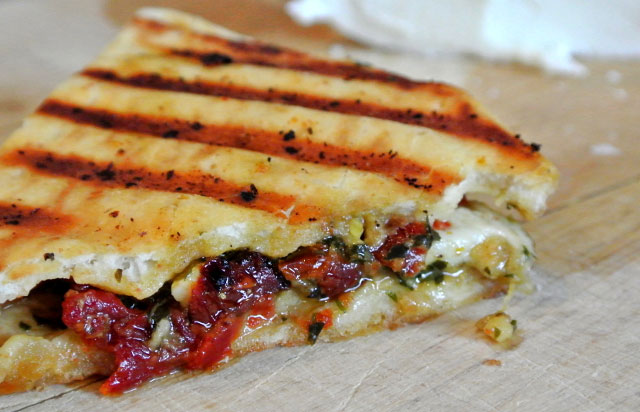 Enjoy any panini sandwich with a hot drink or soft drink for